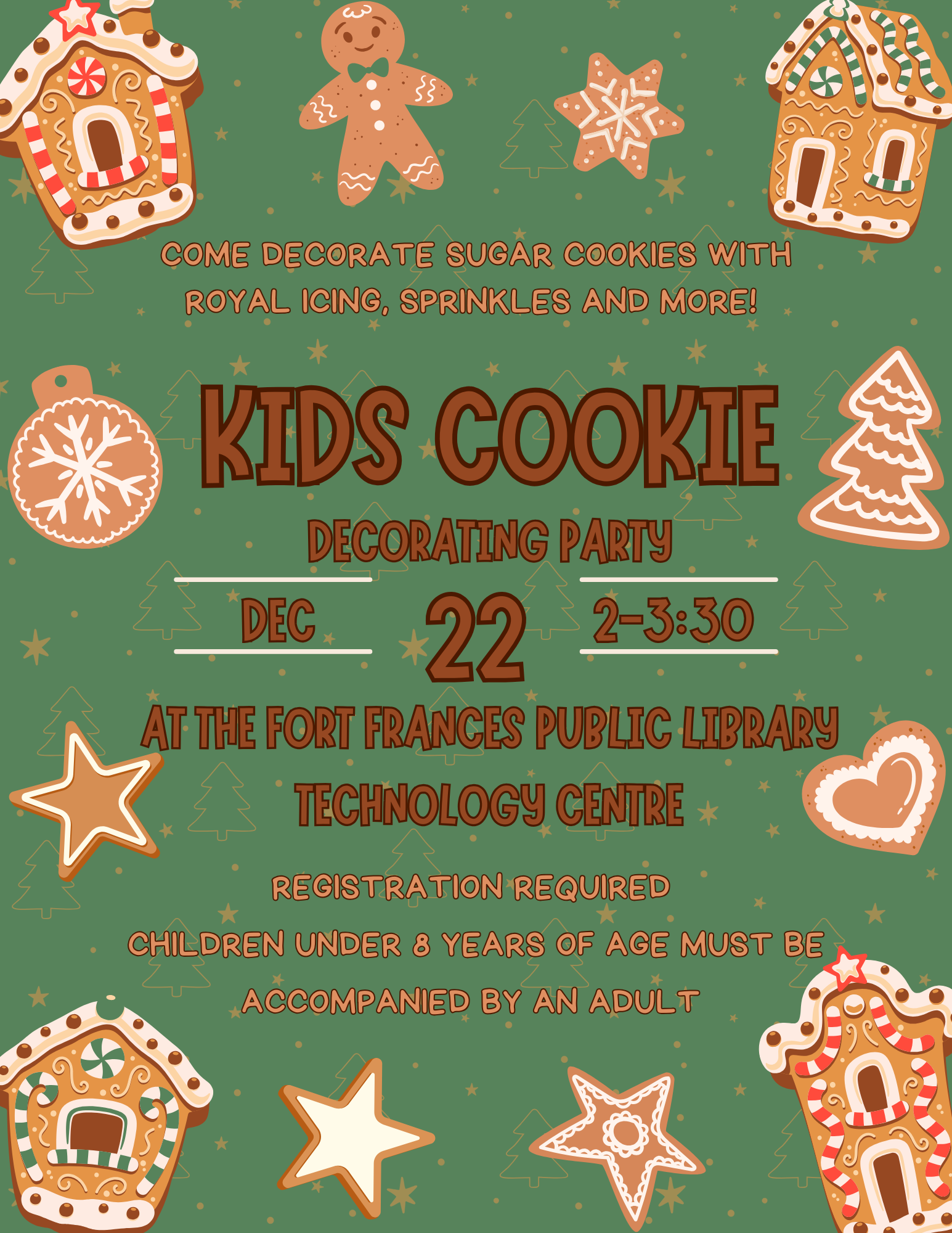 Come to the library for this holiday workshop using royal icing to decorate Christmas themed sugar cookies! Registration is required and children under the ages of 8 must be accompanied by an adult. You can register by calling the libraries front desk! We hope to see you there :)